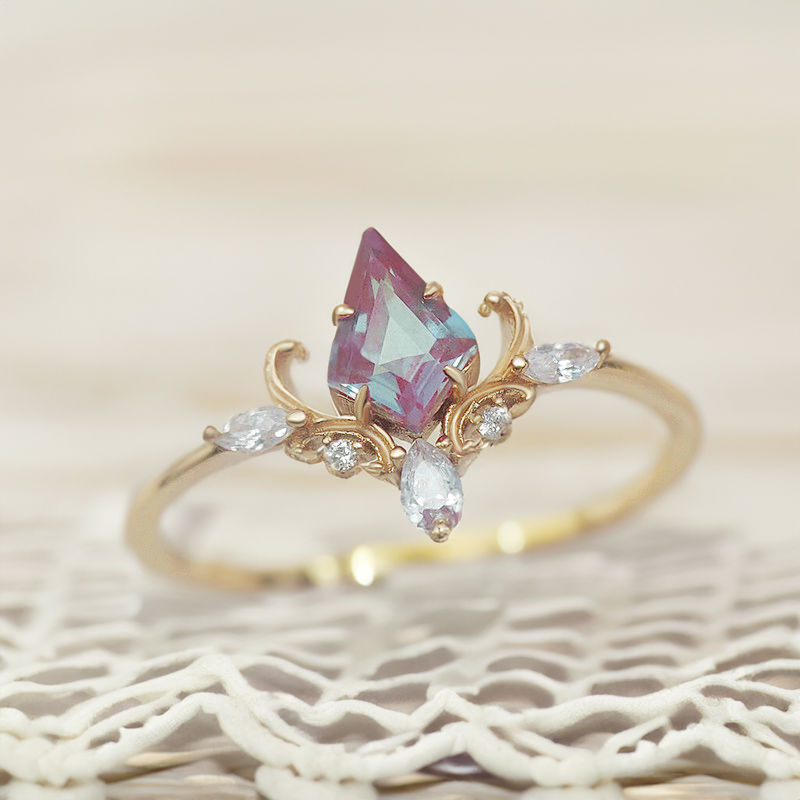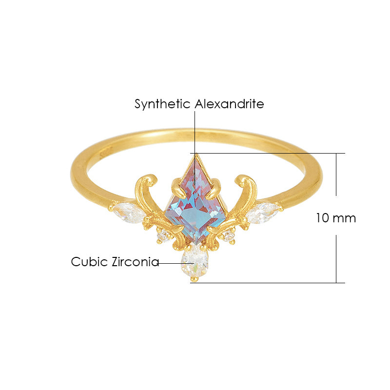 🧚Mystical Gem: At its heart lies a mesmerizing Synthetic Alexandrite, known for its enchanting color shifts from purple to green, capturing the essence of the fae realm.