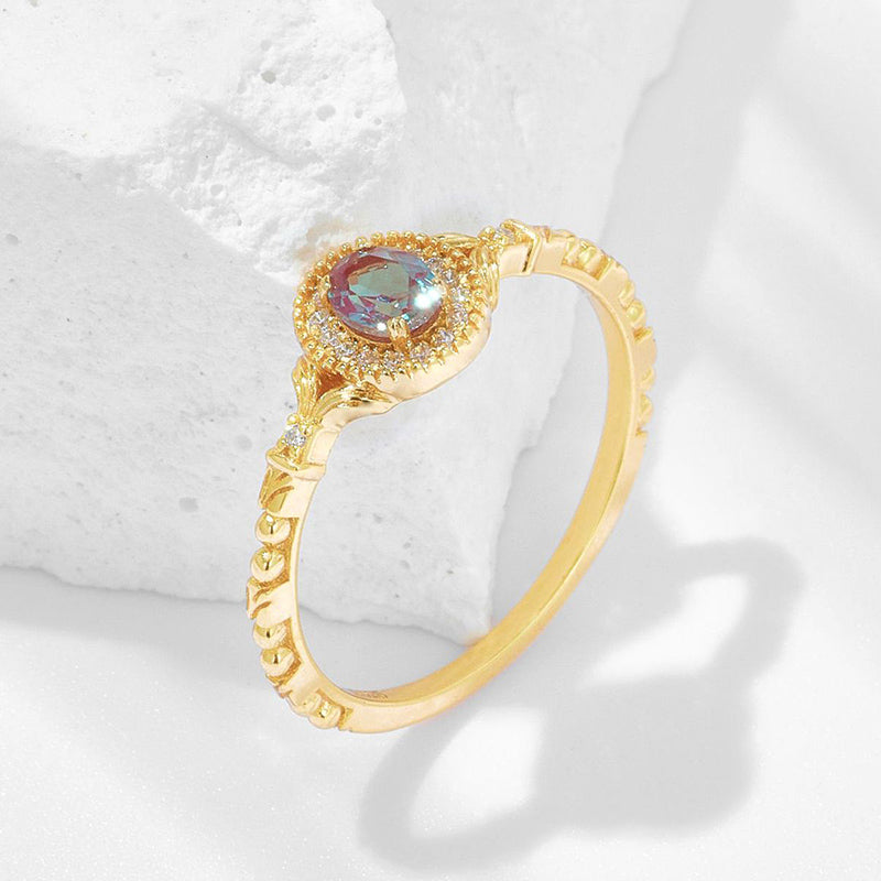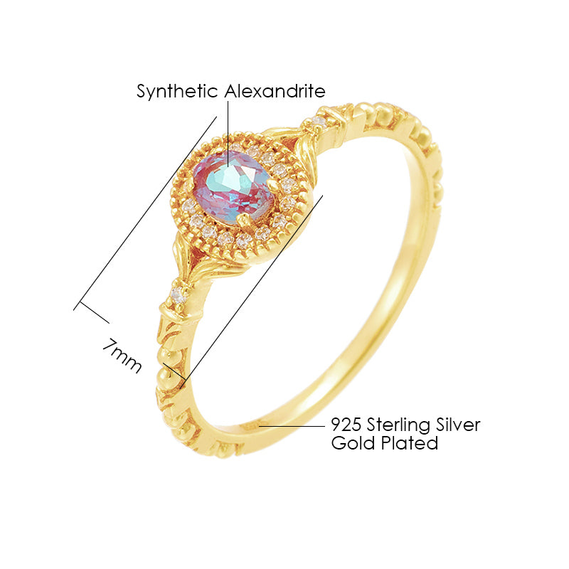 🧚Mystical Gemstone: At its core, you'll find a bewitching Synthetic Alexandrite, renowned for its chameleon-like color shifts from purple to green, capturing the essence of fae magic.