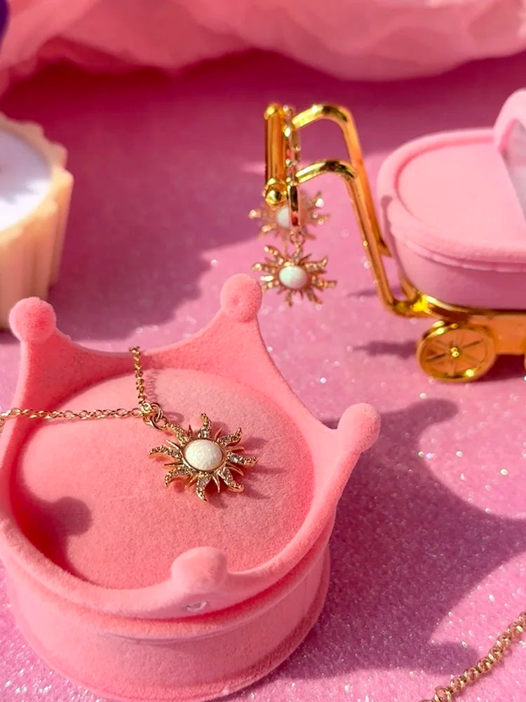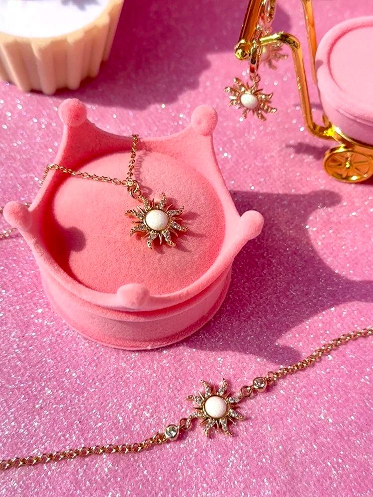 Unlock the magic of "Tangled" with Rapunzel's White Sun Necklace. Order yours today and let your inner princess shine bright.